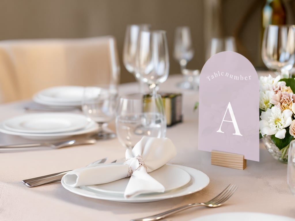 披露宴を演出する「アーチ型のテーブルナンバー」は、大人っぽいデザインが魅力のアイテムです。くすみカラーでまとめられたこのテーブルナンバーは、どんな場面にもマッチし、明るくカラフルな雰囲気を添えます。文字もアーチ型でデザインされており、視覚的にも楽しめる一品です。ポストカードサイズでシンプルながら存在感のあるテーブルセッティングが実現します。